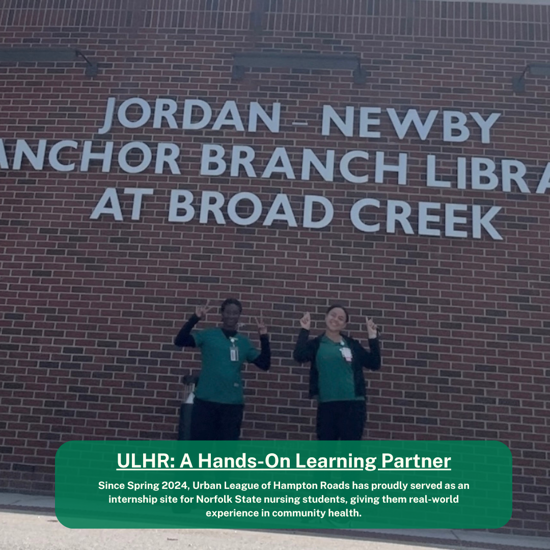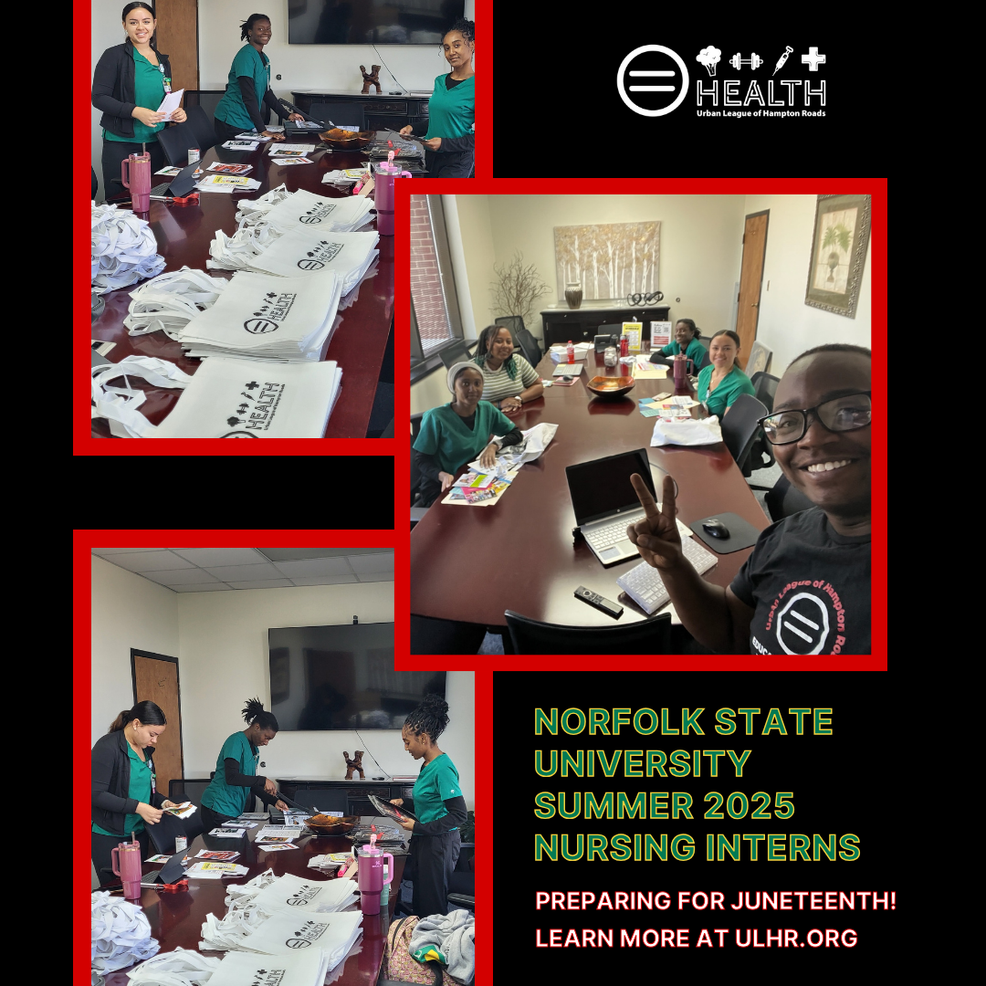 Urban League of Hampton Roads is proud to continue its impactful partnership with Norfolk State University’s Nursing Program, now welcoming its 4th cohort of student interns. Since Spring 2024, this internship has given nursing students hands-on experience in public health outreach, allowing them to apply their clinical skills in meaningful, real-world community settings.